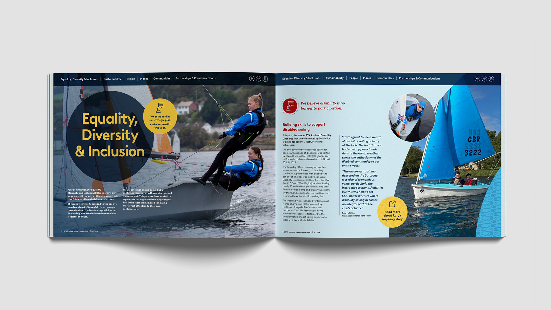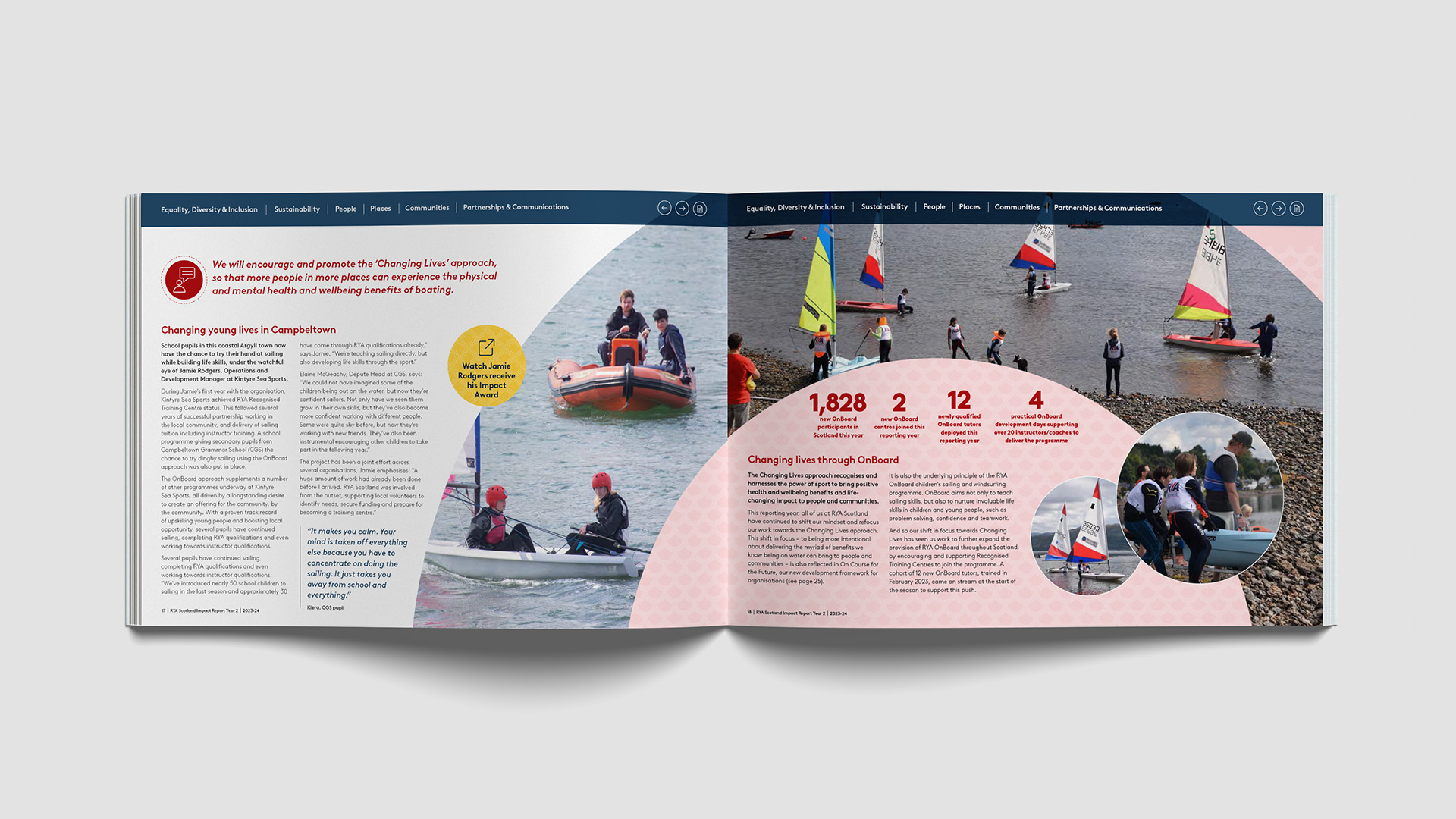 Our creative partnership continues to thrive, with our focus on making a positive impact through impactful creative and bold eye catching design – encouraging participation, championing inclusivity, and helping Scotland’s boating community grow stronger year on year.
